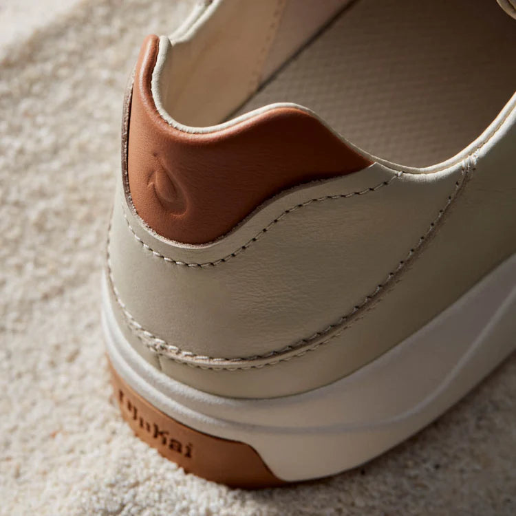 Made from premium full-grain waterproof leather, the Lae‘ahi Lī ‘Ili offers a blend of style and versatility with its natural color palette. The shoe is decorated with intricate debossed Hawaiian kapa artwork on the tongue, adding a touch of OluKai craftsmanship to its classic design.